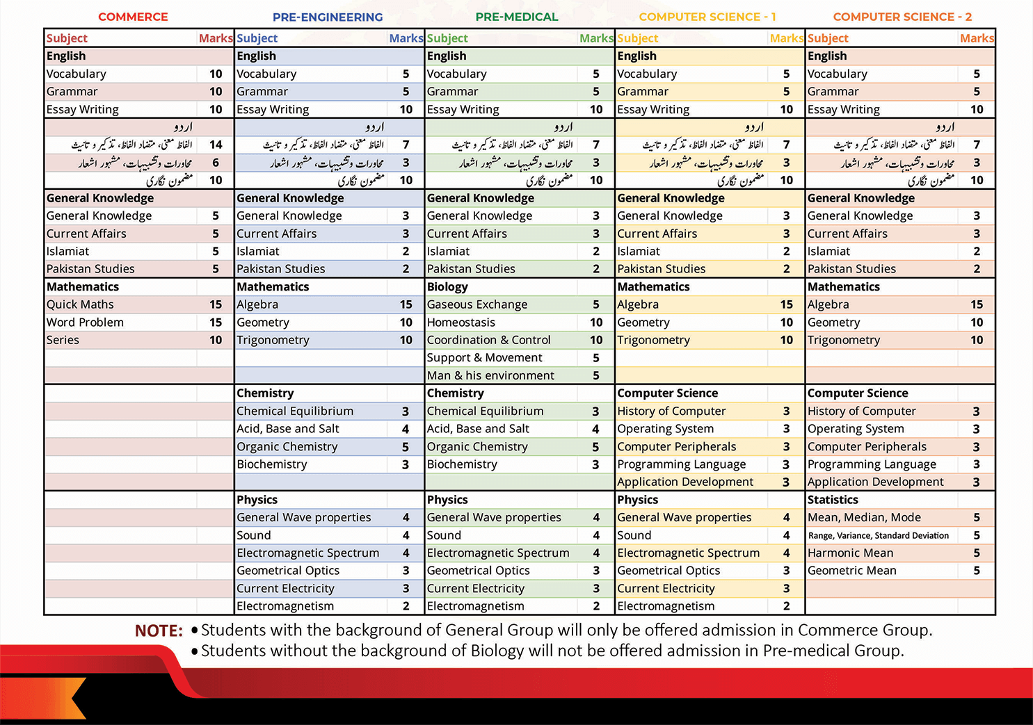 Computerized Admission Test (CAT): Eligible Candidates appear in Computerized Admission Test based on MCQs and Essay Writing in Urdu and English. Candidates unable to clear CAT will be given only one chance to re-appear.